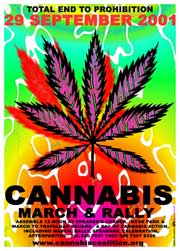 The Cannabis Coalition organised a second demonstration in London in 2001 following the successful, if somewhat damp, Cannabis Carnival held in June.
