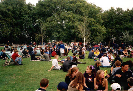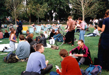 The picnic started with speeches at Speakers Corner where a small crowd had gathered. A few uninterested police looked on as people started rolling suspicious looking cigarettes, but after a while the hard tarmac got too much, so we sauntered onto the grass of Hyde Park and began the picnic.
